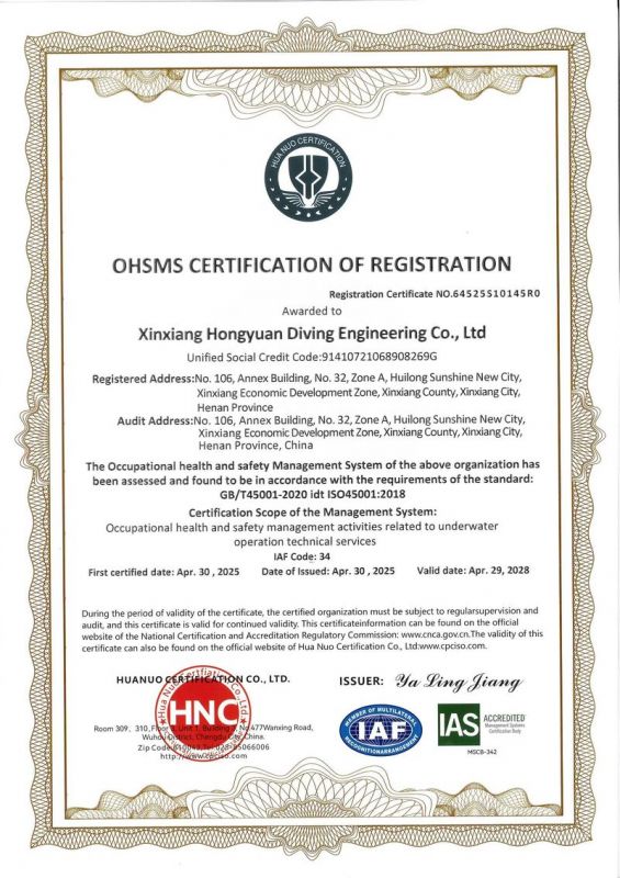 新鄉市鴻源潛水工程有限公司,有從事潛水行業二十多年的潛水團隊。公司具有獨立法人資格,注冊資金600萬元。   公司的潛水人員、潛水檢測人員、潛水焊接人員均經過正規培訓,全部持有國內權威機構頒發的資質證書。我公司水下焊接可靠,質量優良,技術過硬,可水下焊接鋼管樁,水下焊接犧牲陽極鋅塊,水下焊接連接梁,水下封堵焊接等等施工,報價合理,拒絕暴利,竭誠為您服務!水下電焊工程,水下電焊報價合理水廠電廠的水池、水道清淤、泵房清理、管道鋪放、攔污柵清污、更換閘門起落、導流洞、水庫壩體等維修施工水下補強加固:對水利電力系統水庫、大壩及沿海內河港口、碼頭等水工建筑物水下鋼結構或混凝土結構缺陷進行。無論是對現在或將來,都將是一項非常有意義的工作。水下焊接將成為水下作業,水下安裝,水下維修等水下作業工程中不可或缺的重要工藝手段.公司堅持“先進的技術設備.優質的服務質量.服務效率.熱情的服務態度,為生產經營理念,以拒絕暴利合理收費為原則立足全國市場。我們將以優質的產品與售后服務來打造用戶良好體驗。愿同新老客戶竭誠合作、互惠互利、共創輝煌!水下電焊工程,水下電焊報價合理,鋼圍堰清淤公司鴻源-水下電焊工程,水下電焊報價合理,鋼圍堰清淤公司,水下電焊工程。      新鄉市鴻源潛水工程有限公司我公司成功打造鴻源優質服務。公司的潛水人員、潛水檢測人員、潛水焊接人員均經過正規培訓,全部持有國內權威機構頒發的資質證書。經過多年經營,公司具備公司具有獨立法人資格。